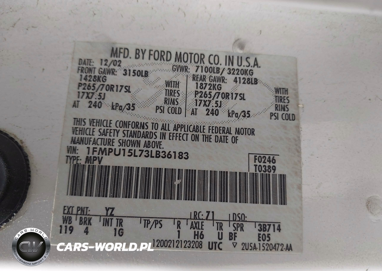 IAAI Nr: I-44834347 VIN: 1FMPU15L73LB36183 Port: Los Angeles, CA