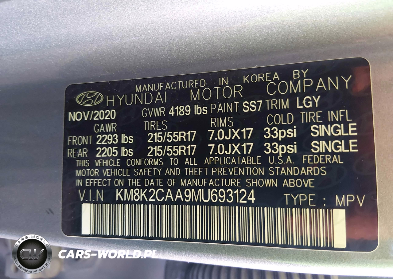 IAAI Nr: I-44834490 VIN: KM8K2CAA9MU693124 Port: Los Angeles, CA