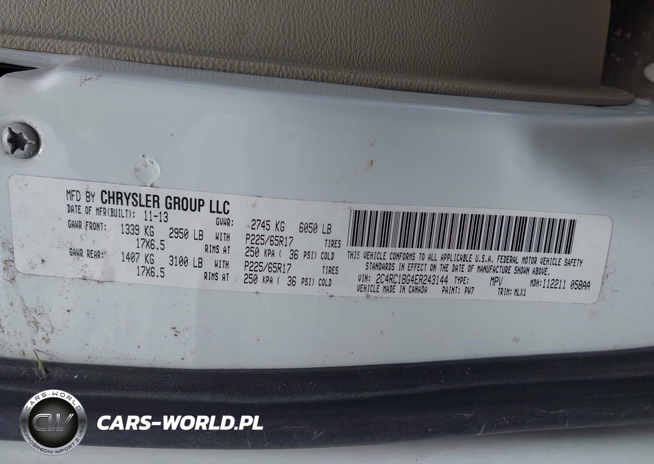 IAAI Nr: I-44836463 VIN: 2C4RC1BG4ER243144 Port: Indianapolis, IN