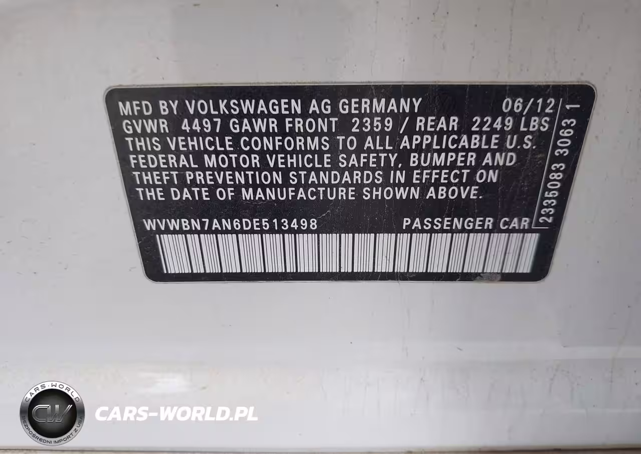 IAAI Nr: I-44836757 VIN: WVWBN7AN6DE513498 Port: Houston, TX