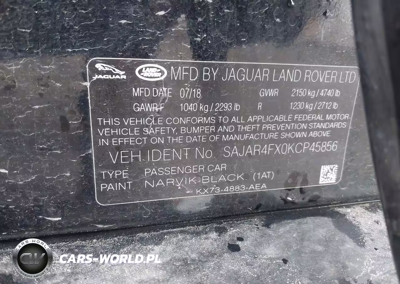 IAAI Nr: I-44836901 VIN: SAJAR4FX0KCP45856 Port: Savannah, GA