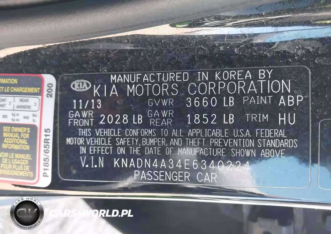 IAAI Nr: I-44837142 VIN: KNADN4A34E6340224 Port: Elizabeth, NJ