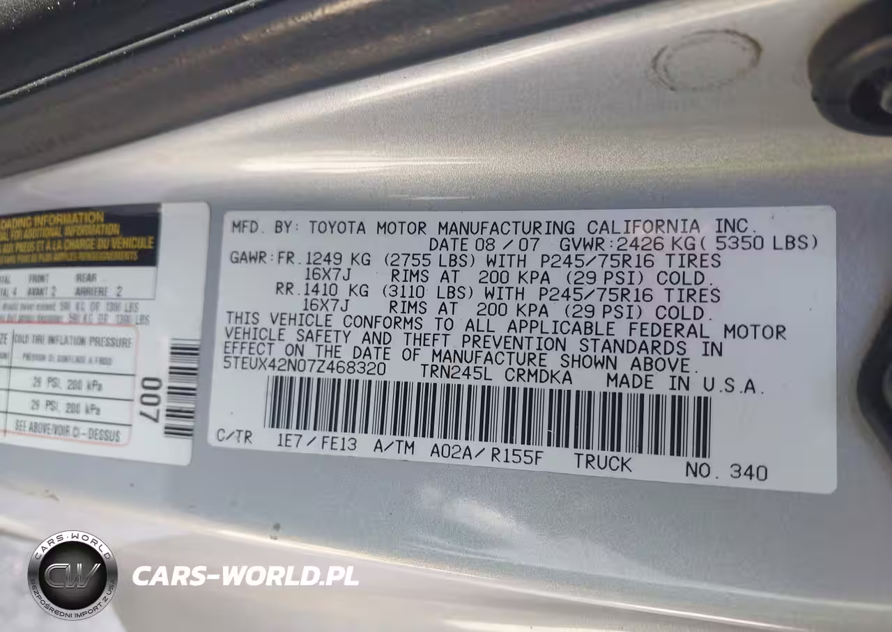 IAAI Nr: I-44837161 VIN: 5TEUX42N07Z468320 Port: Elizabeth, NJ
