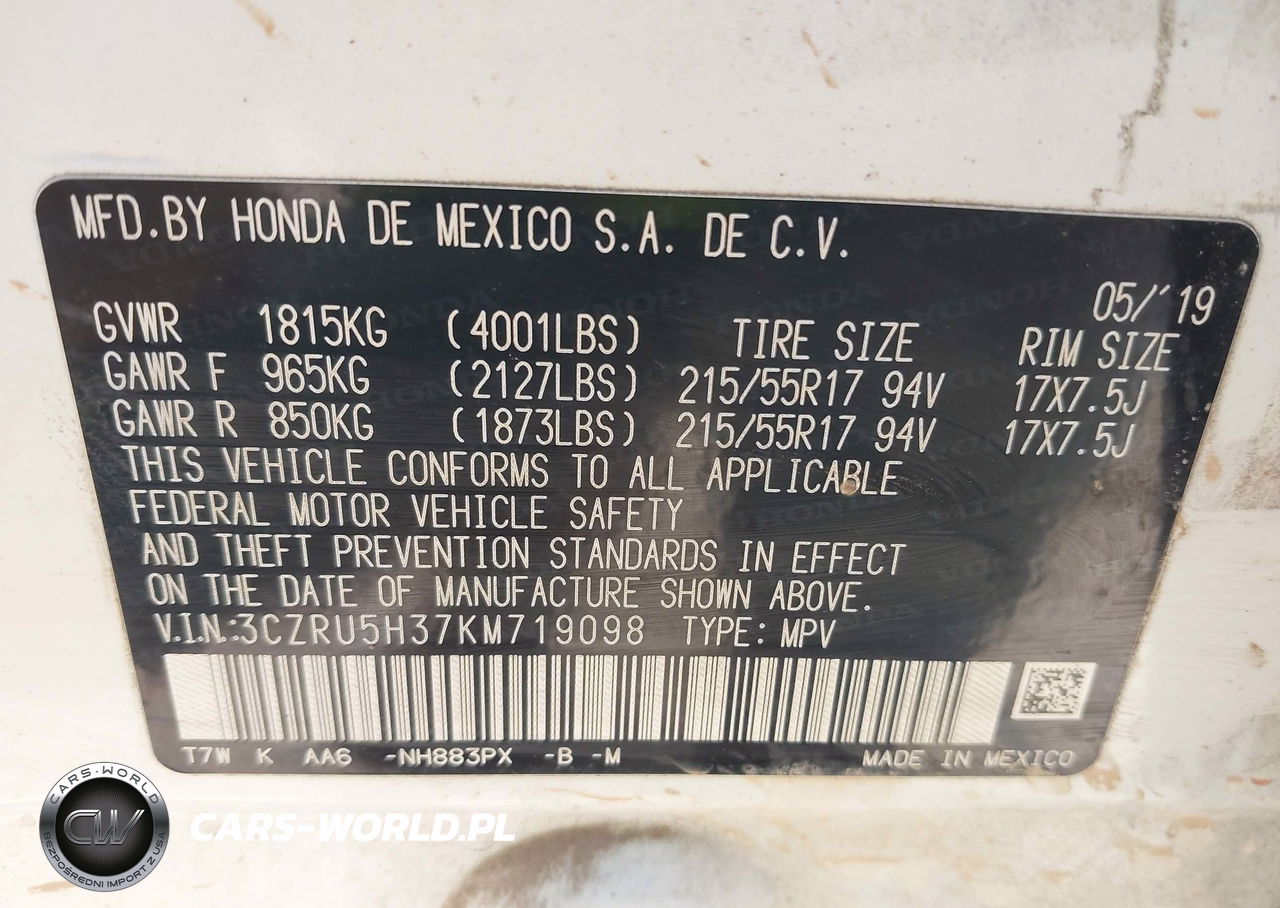 IAAI Nr: I-44837939 VIN: 3CZRU5H37KM719098 Port: Houston, TX