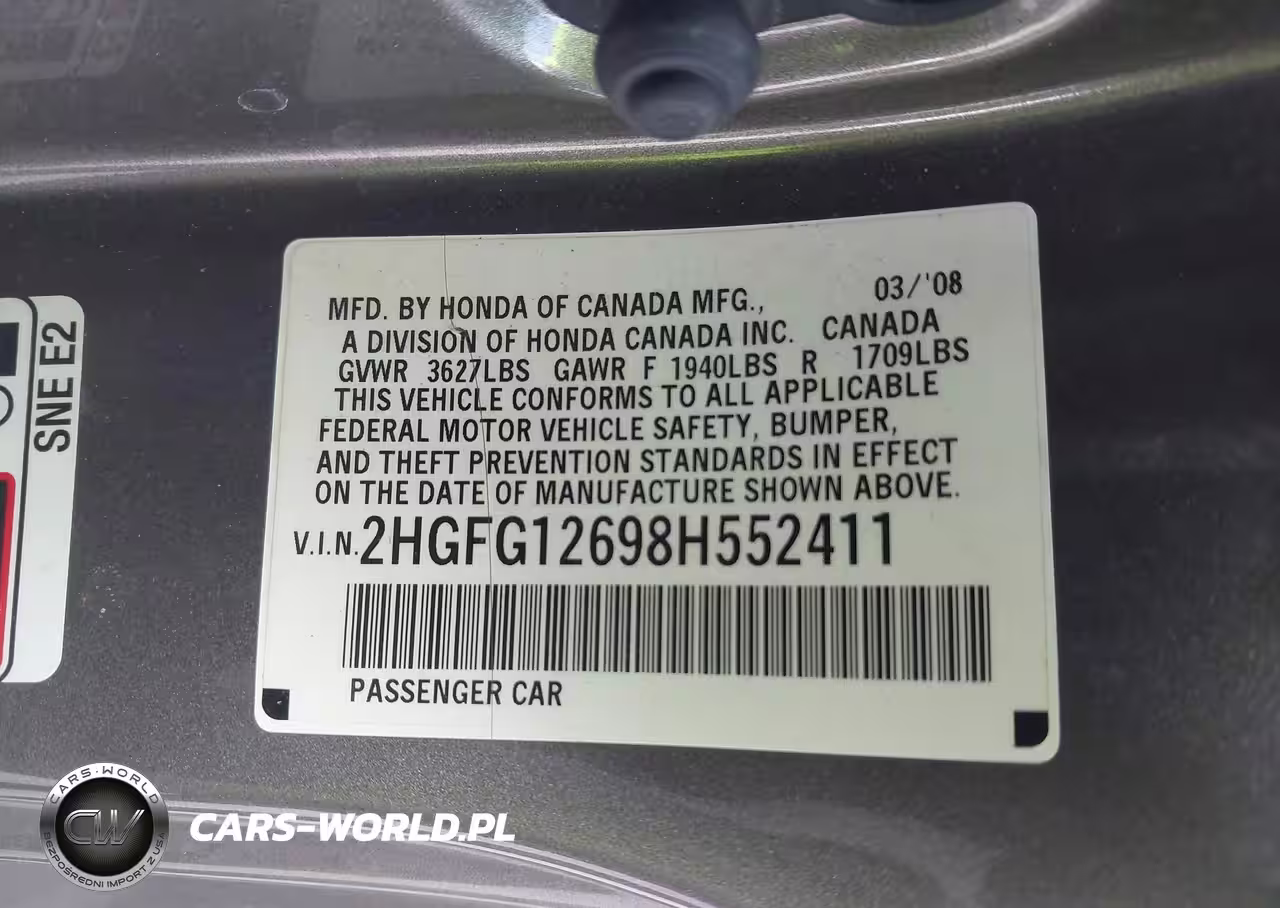 IAAI Nr: I-44840859 VIN: 2HGFG12698H552411 Port: Indianapolis, IN