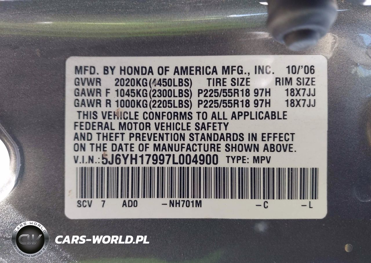 IAAI Nr: I-44840953 VIN: 5J6YH17997L004900 Port: Los Angeles, CA
