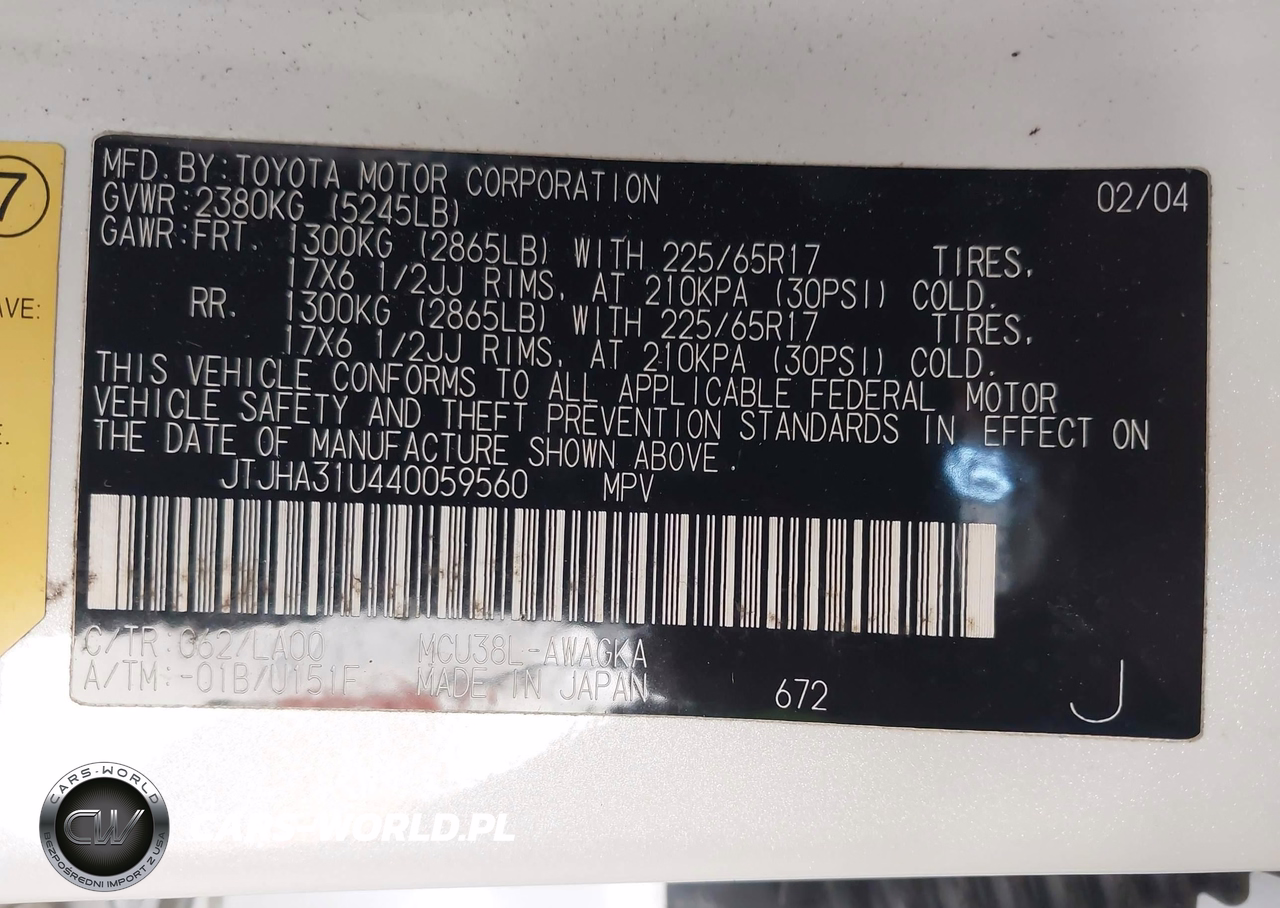 IAAI Nr: I-44841136 VIN: JTJHA31U440059560 Port: Savannah, GA