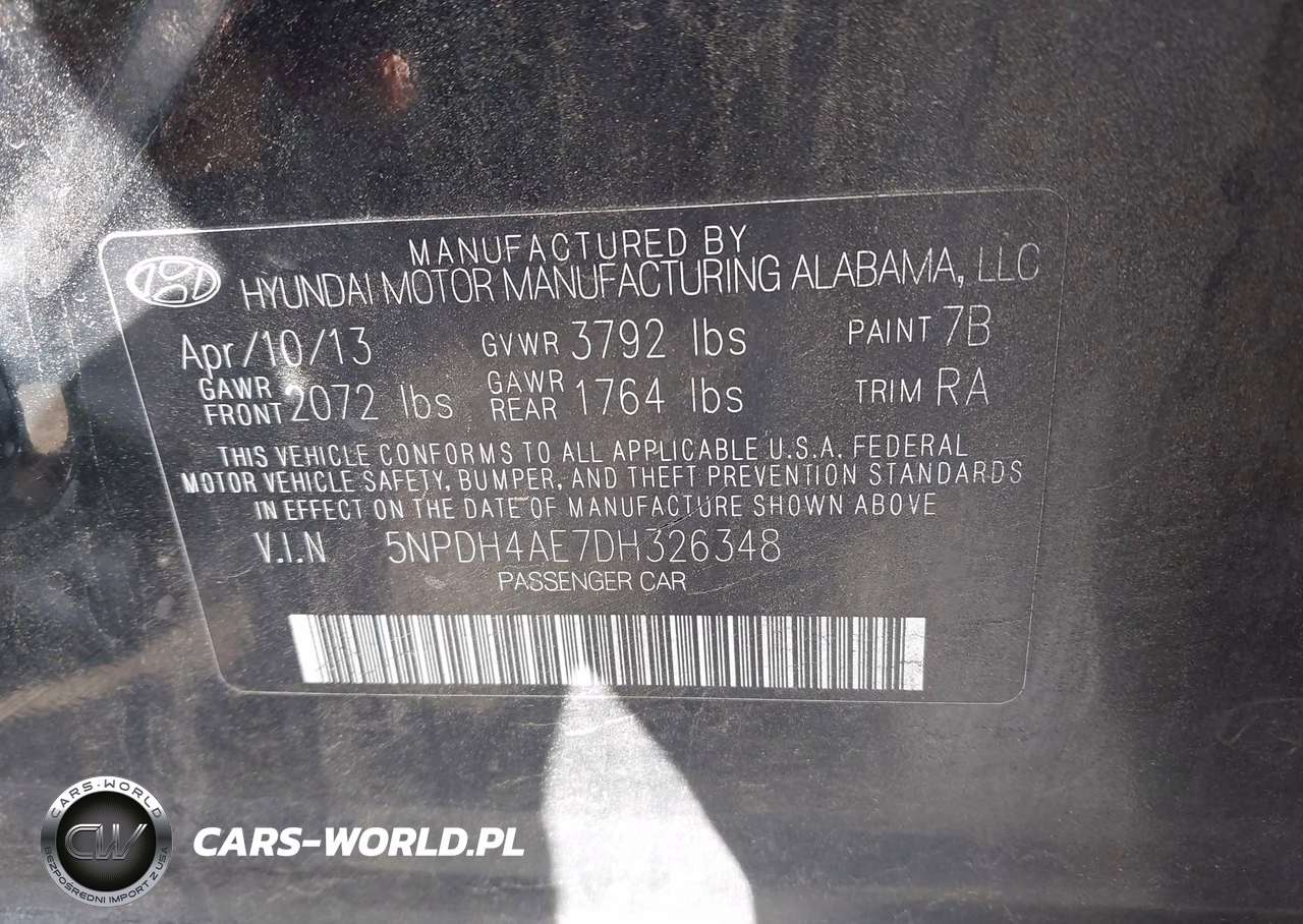 IAAI Nr: I-44841223 VIN: 5NPDH4AE7DH326348 Port: Savannah, GA