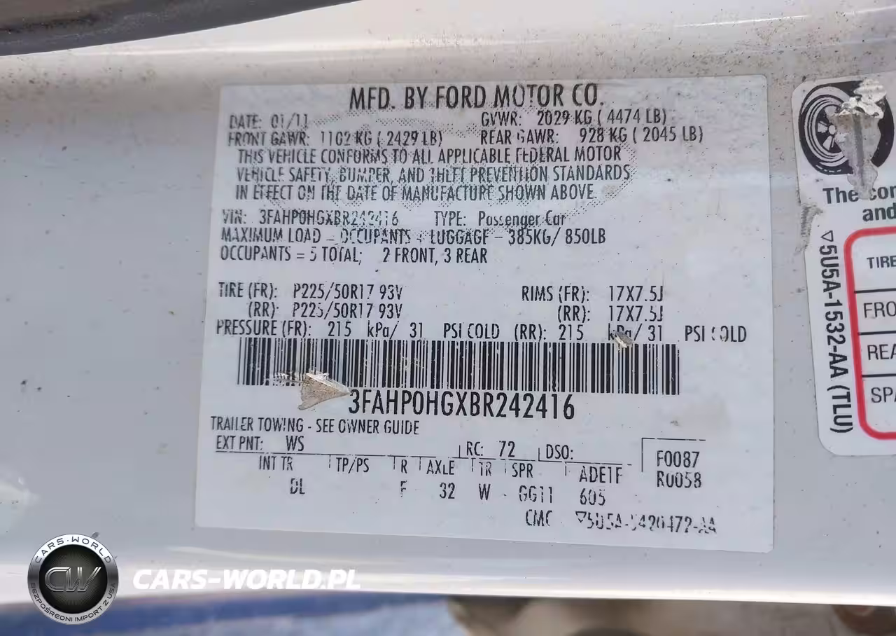 IAAI Nr: I-44841942 VIN: 3FAHP0HGXBR242416 Port: Elizabeth, NJ