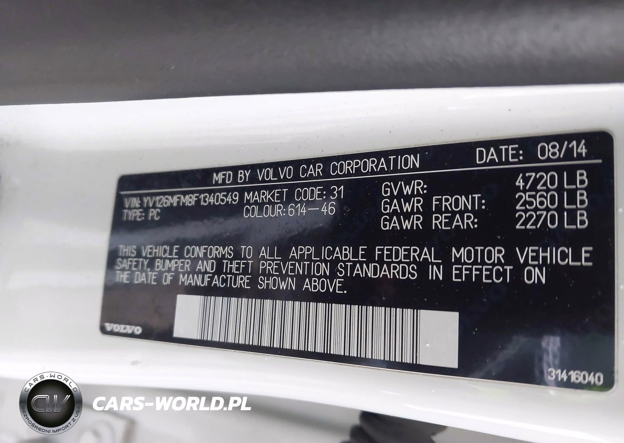 IAAI Nr: I-44842007 VIN: YV126MFM8F1340549 Port: Indianapolis, IN