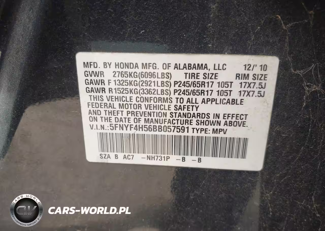 IAAI Nr: I-44842772 VIN: 5FNYF4H56BB057591 Port: Houston, TX