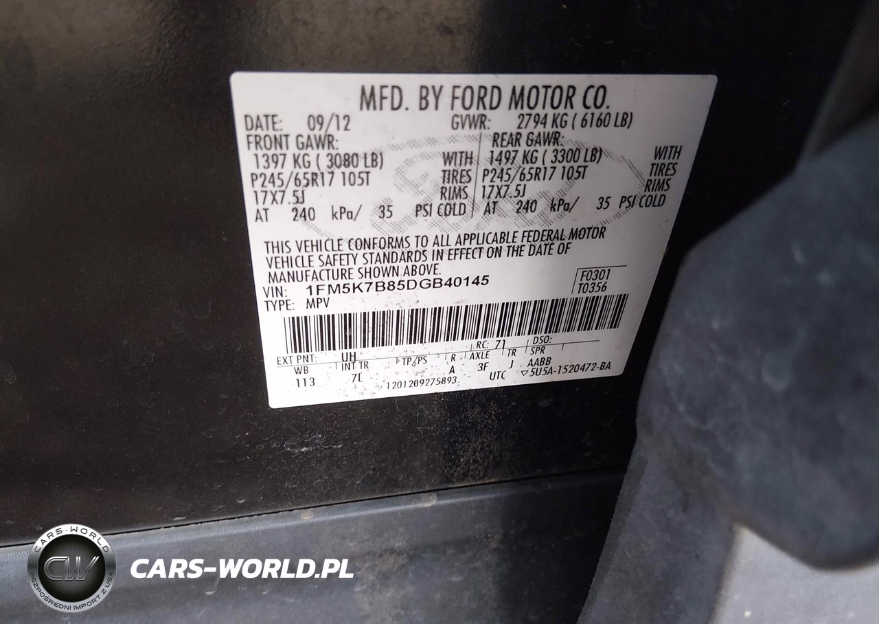 IAAI Nr: I-44843613 VIN: 1FM5K7B85DGB40145 Port: Los Angeles, CA