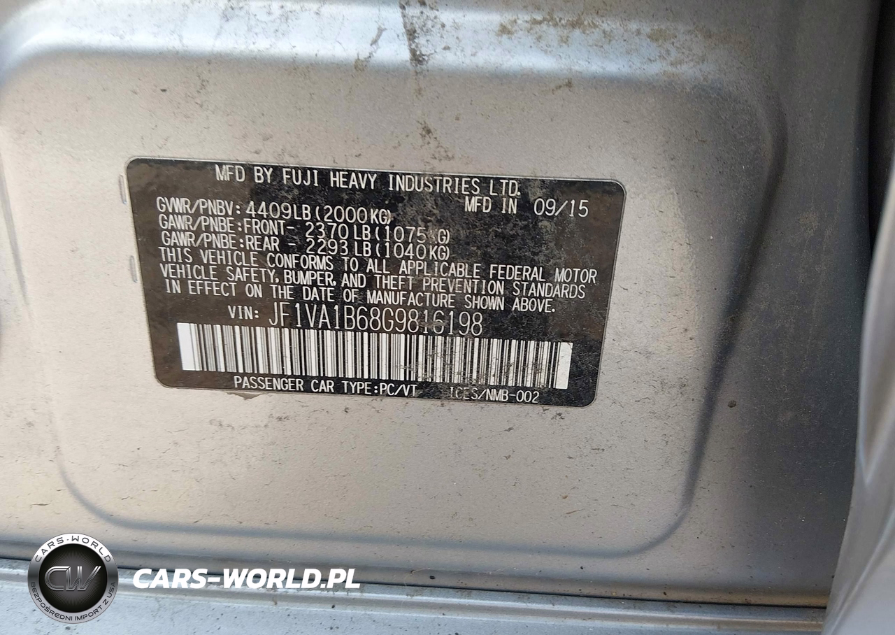 IAAI Nr: I-44844231 VIN: JF1VA1B68G9816198 Port: Elizabeth, NJ