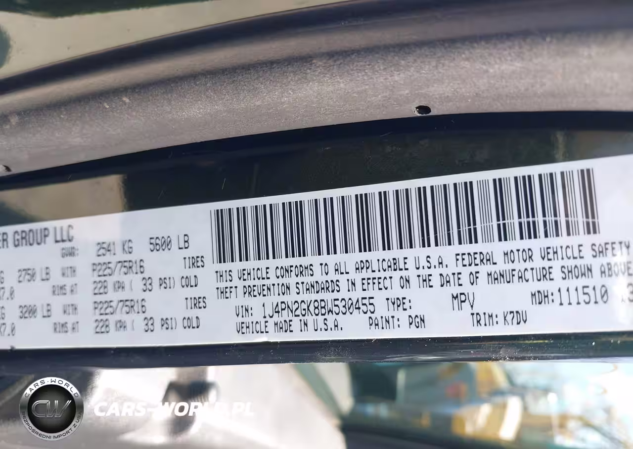 IAAI Nr: I-44844772 VIN: 1J4PN2GK8BW530455 Port: Elizabeth, NJ