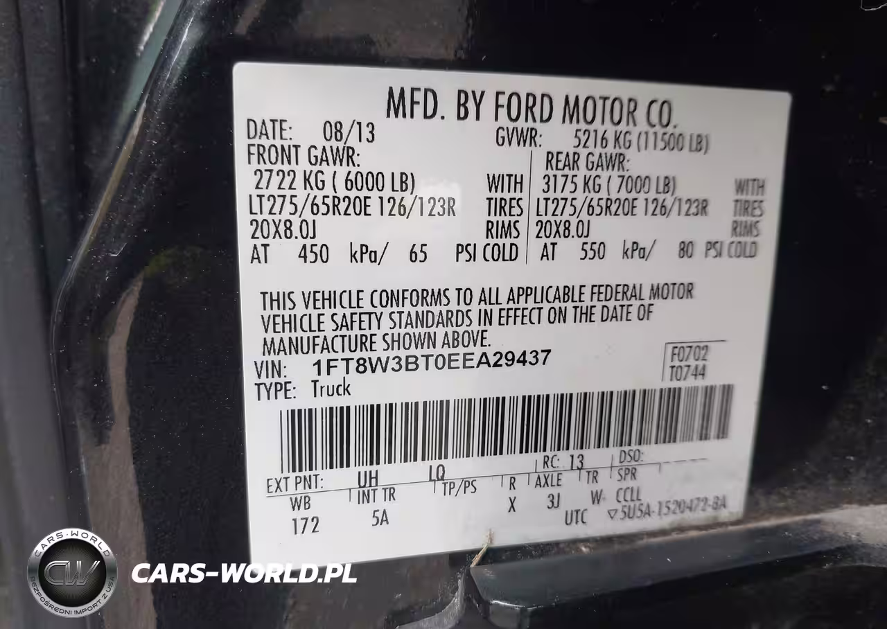 IAAI Nr: I-44845450 VIN: 1FT8W3BT0EEA29437 Port: Savannah, GA