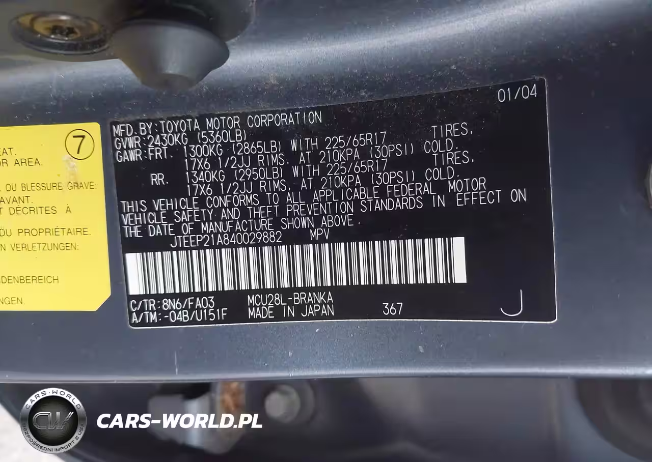IAAI Nr: I-44845493 VIN: JTEEP21A840029882 Port: Los Angeles, CA