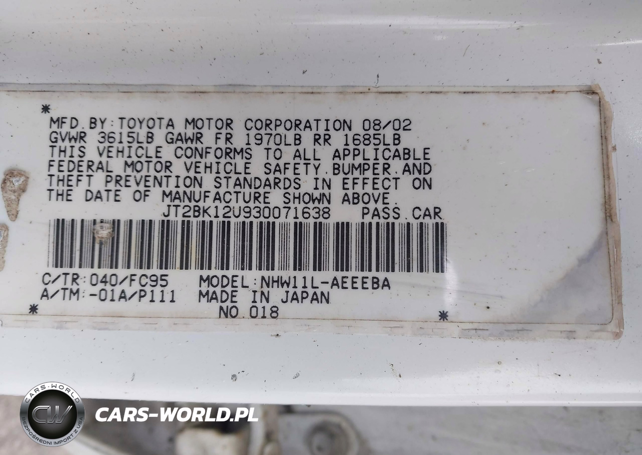 IAAI Nr: I-44847014 VIN: JT2BK12U930071638 Port: Los Angeles, CA
