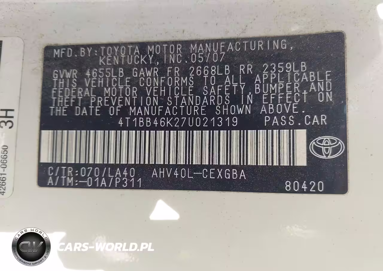 IAAI Nr: I-44847277 VIN: 4T1BB46K27U021319 Port: Savannah, GA