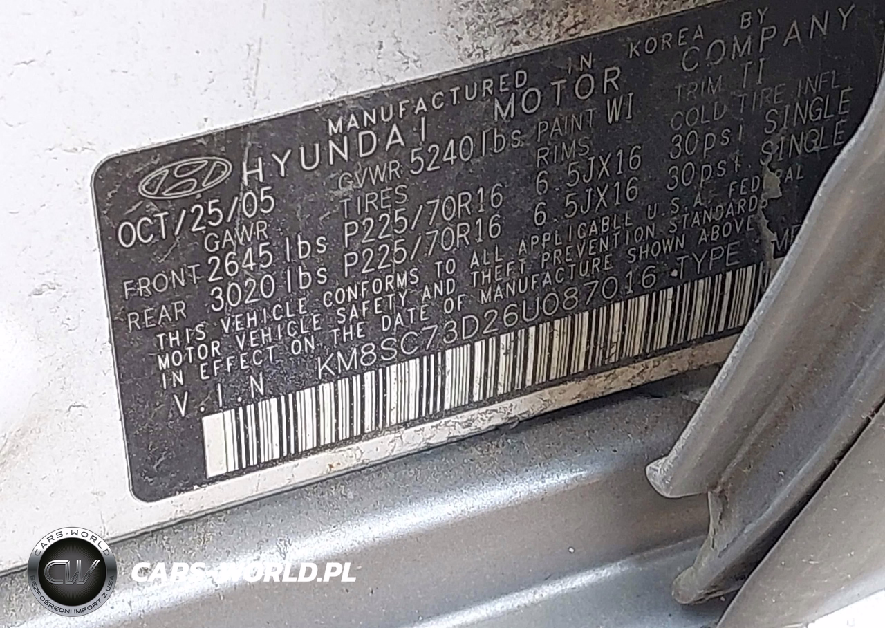 IAAI Nr: I-44847913 VIN: KM8SC73D26U087016 Port: Elizabeth, NJ