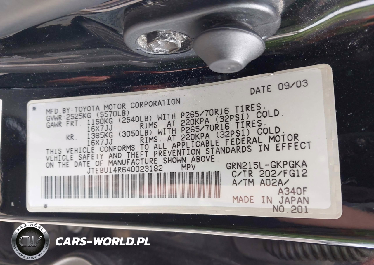 IAAI Nr: I-44848320 VIN: JTEBU14R640023182 Port: Elizabeth, NJ