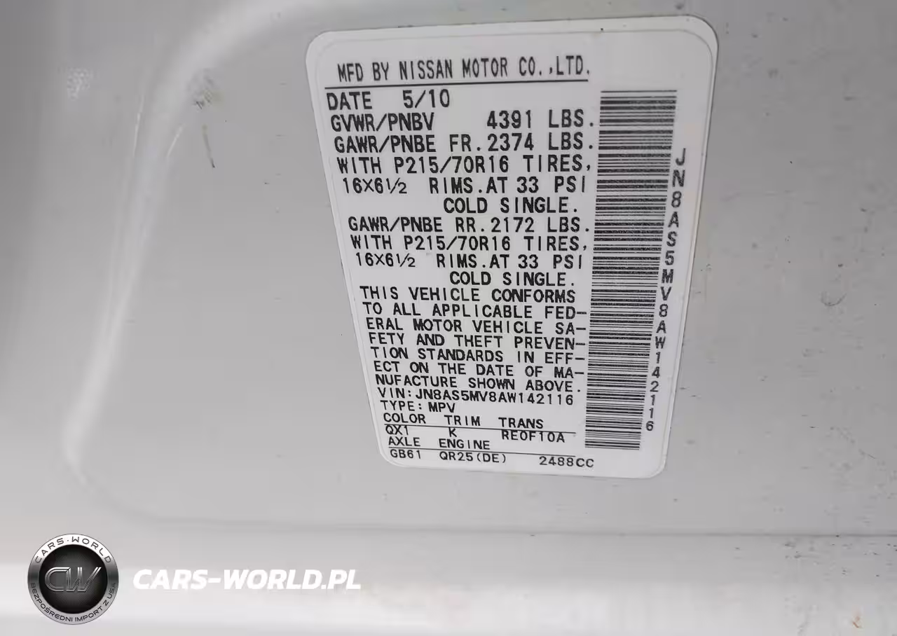 IAAI Nr: I-44848707 VIN: JN8AS5MV8AW142116 Port: Houston, TX