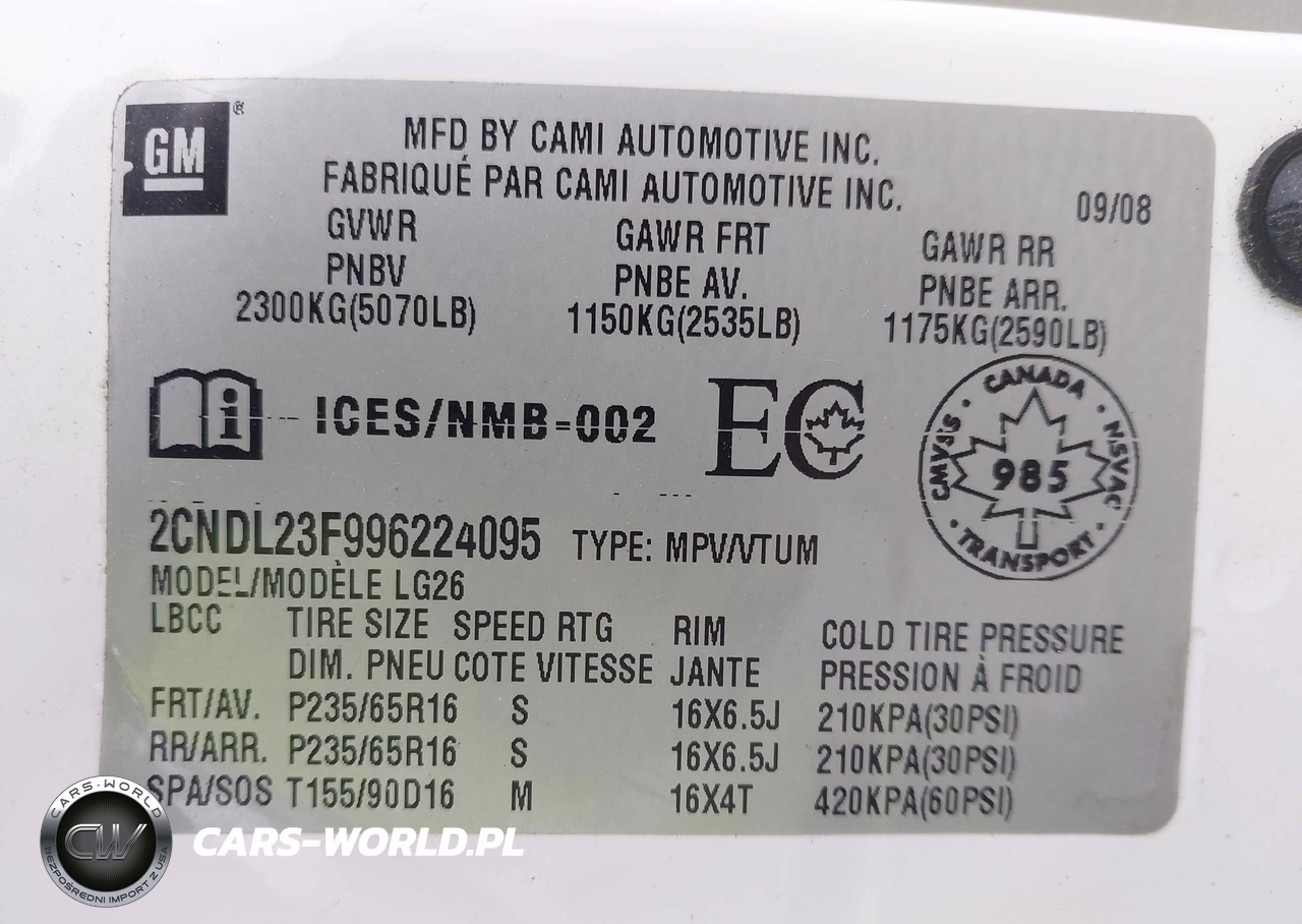 IAAI Nr: I-44848988 VIN: 2CNDL23F996224095 Port: Indianapolis, IN