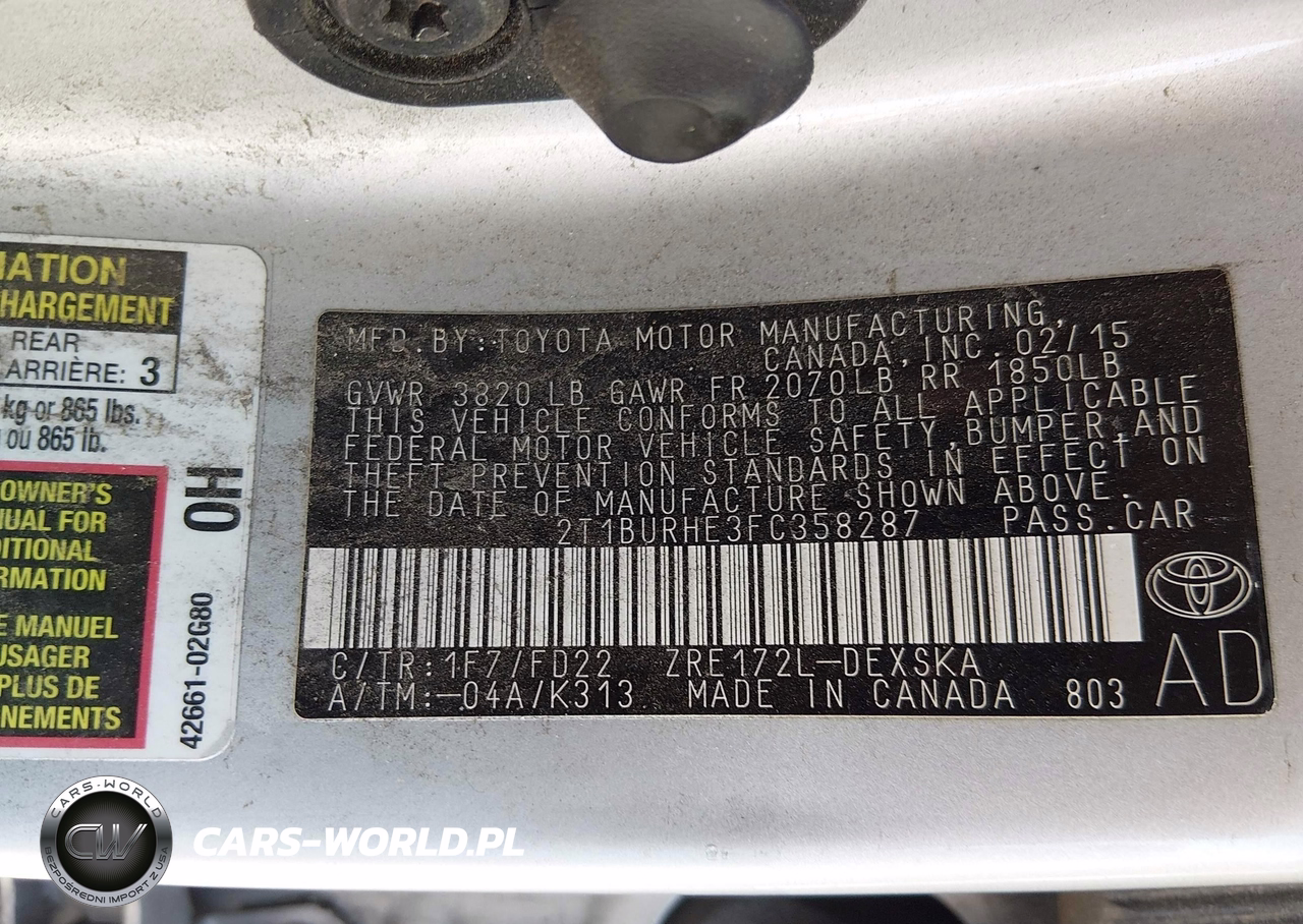 IAAI Nr: I-44849038 VIN: 2T1BURHE3FC358287 Port: Savannah, GA