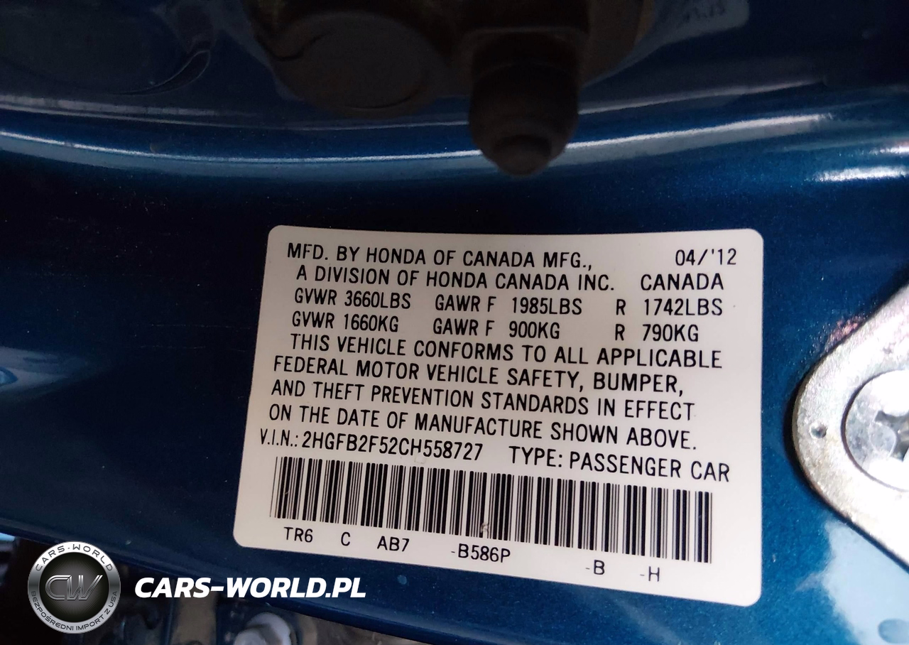 IAAI Nr: I-44850083 VIN: 2HGFB2F52CH558727 Port: Los Angeles, CA