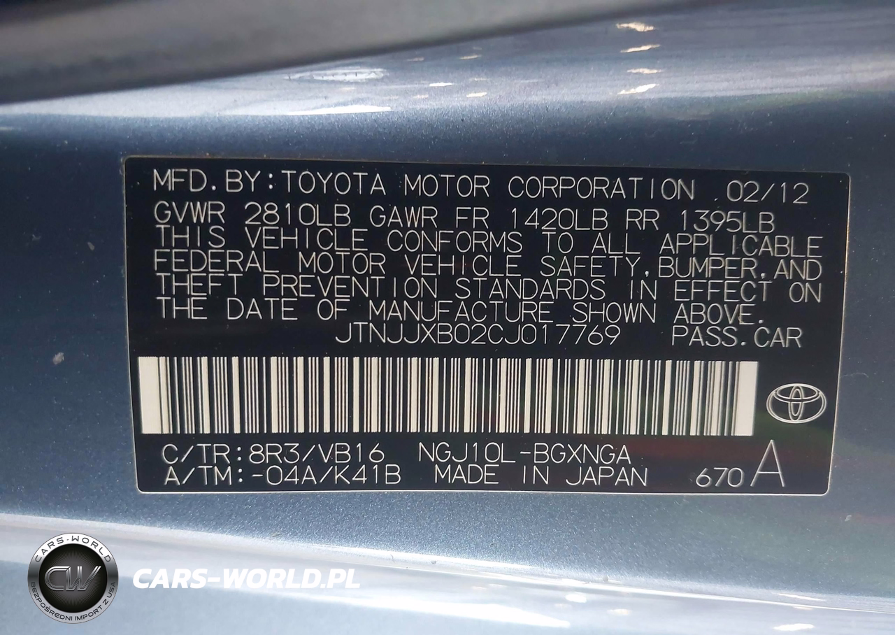 IAAI Nr: I-44851878 VIN: JTNJJXB02CJ017769 Port: Los Angeles, CA
