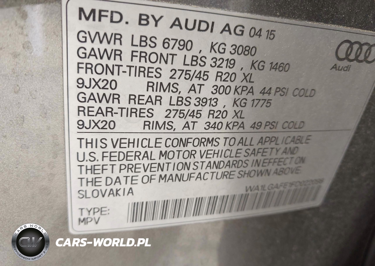 IAAI Nr: I-44851901 VIN: WA1LGAFE1FD022098 Port: Elizabeth, NJ