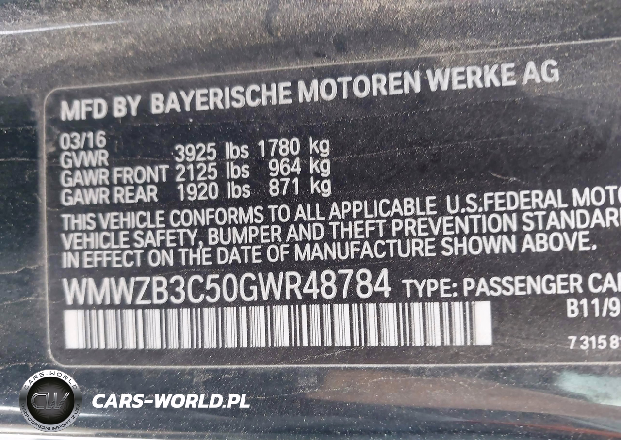 IAAI Nr: I-44852166 VIN: WMWZB3C50GWR48784 Port: Houston, TX