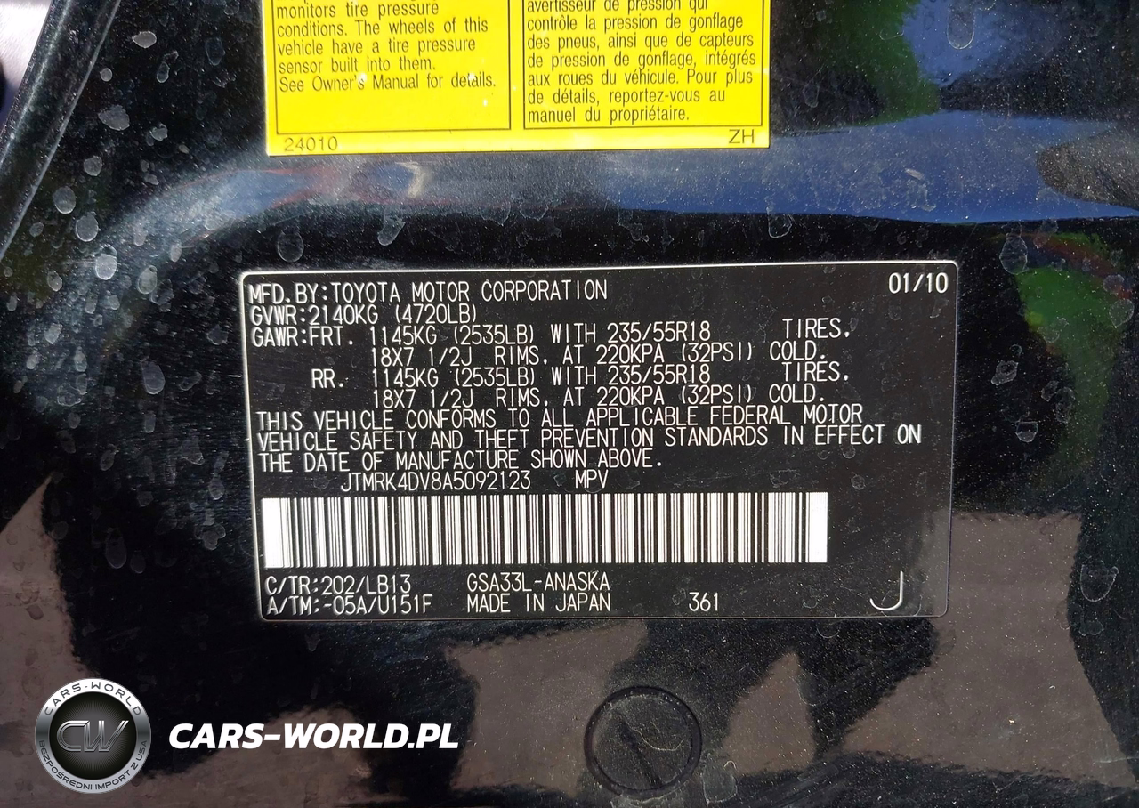 IAAI Nr: I-44852565 VIN: JTMRK4DV8A5092123 Port: Los Angeles, CA