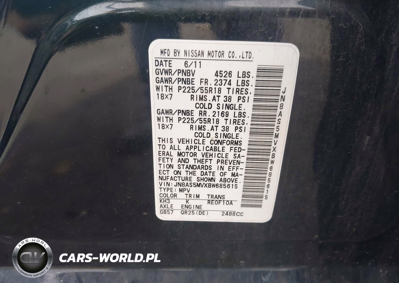 IAAI Nr: I-44853389 VIN: JN8AS5MVXBW685615 Port: Elizabeth, NJ