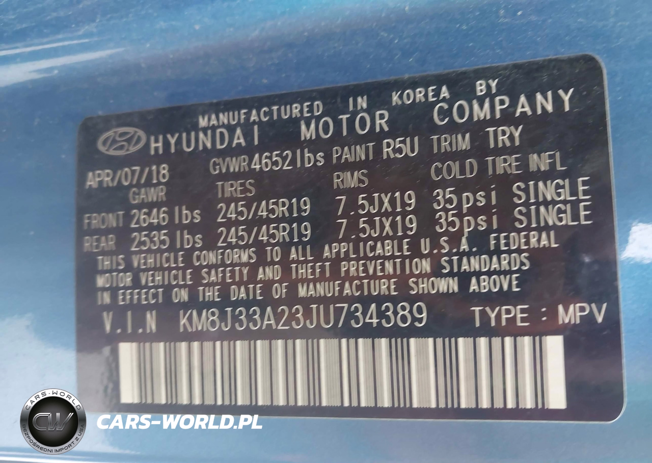 IAAI Nr: I-44853494 VIN: KM8J33A23JU734389 Port: Houston, TX