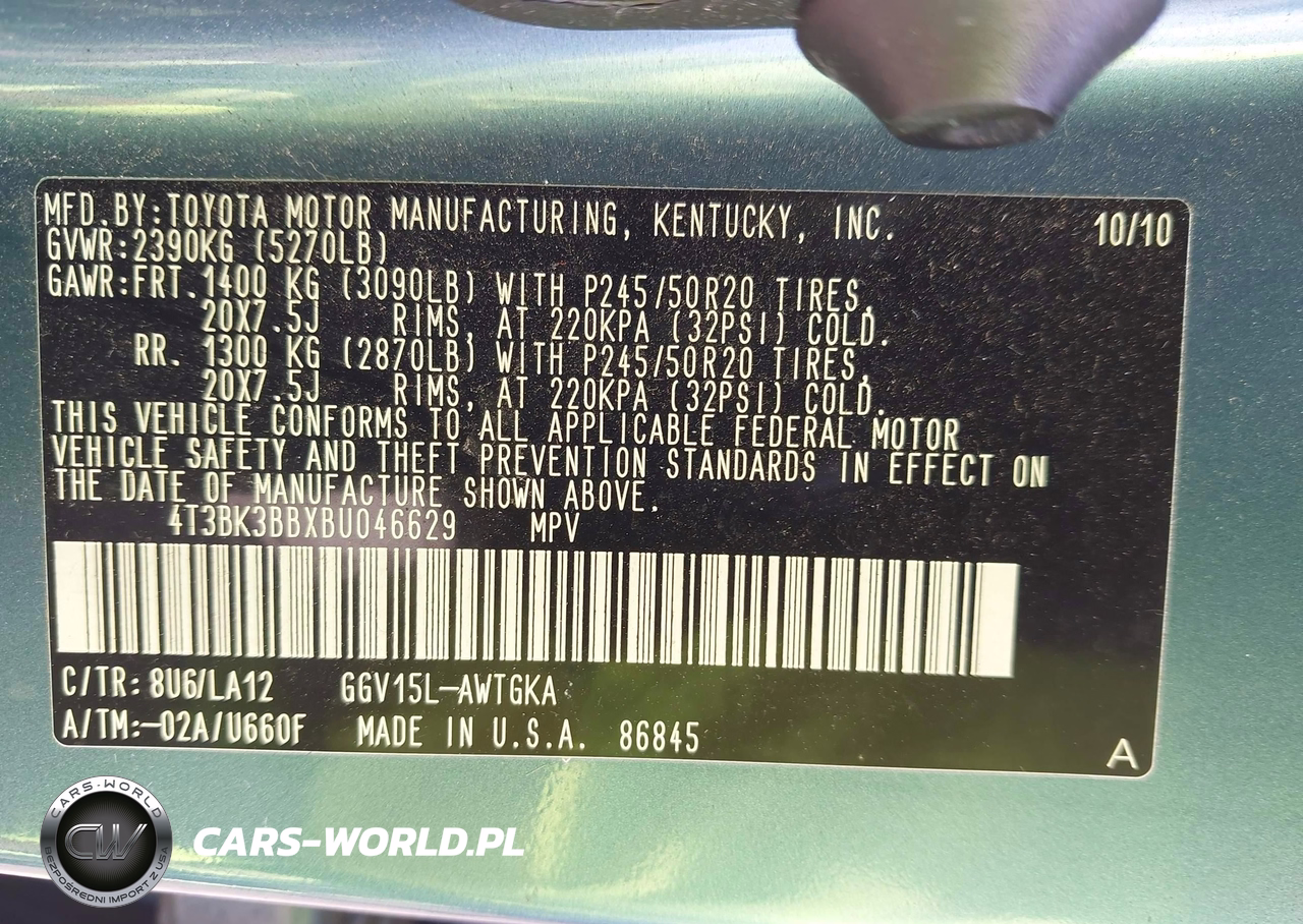 IAAI Nr: I-44853998 VIN: 4T3BK3BBXBU046629 Port: Elizabeth, NJ