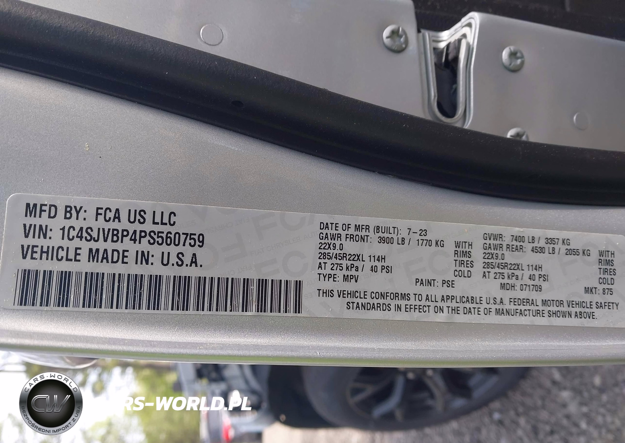 IAAI Nr: I-44854501 VIN: 1C4SJVBP4PS560759 Port: Elizabeth, NJ