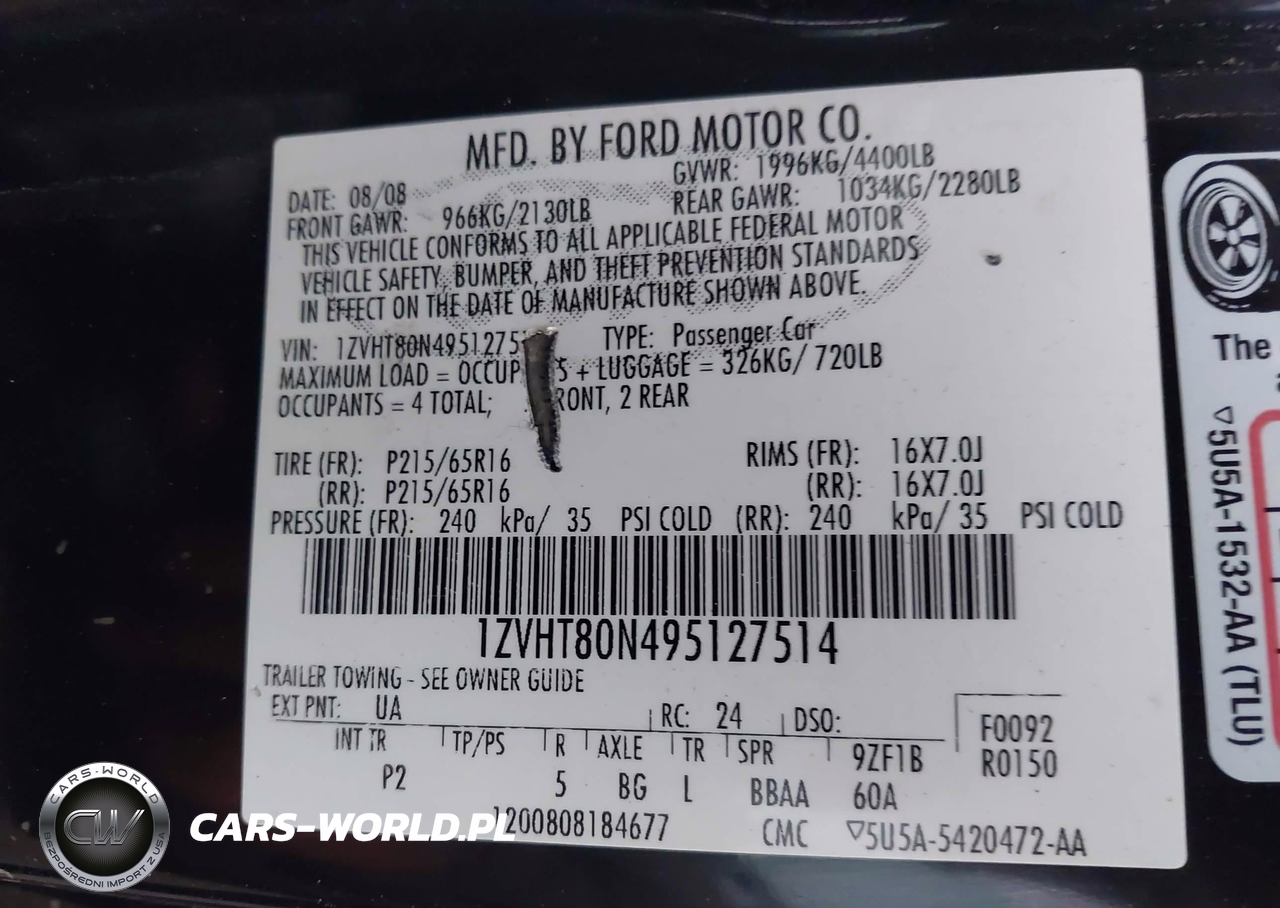 IAAI Nr: I-44854634 VIN: 1ZVHT80N495127514 Port: Houston, TX