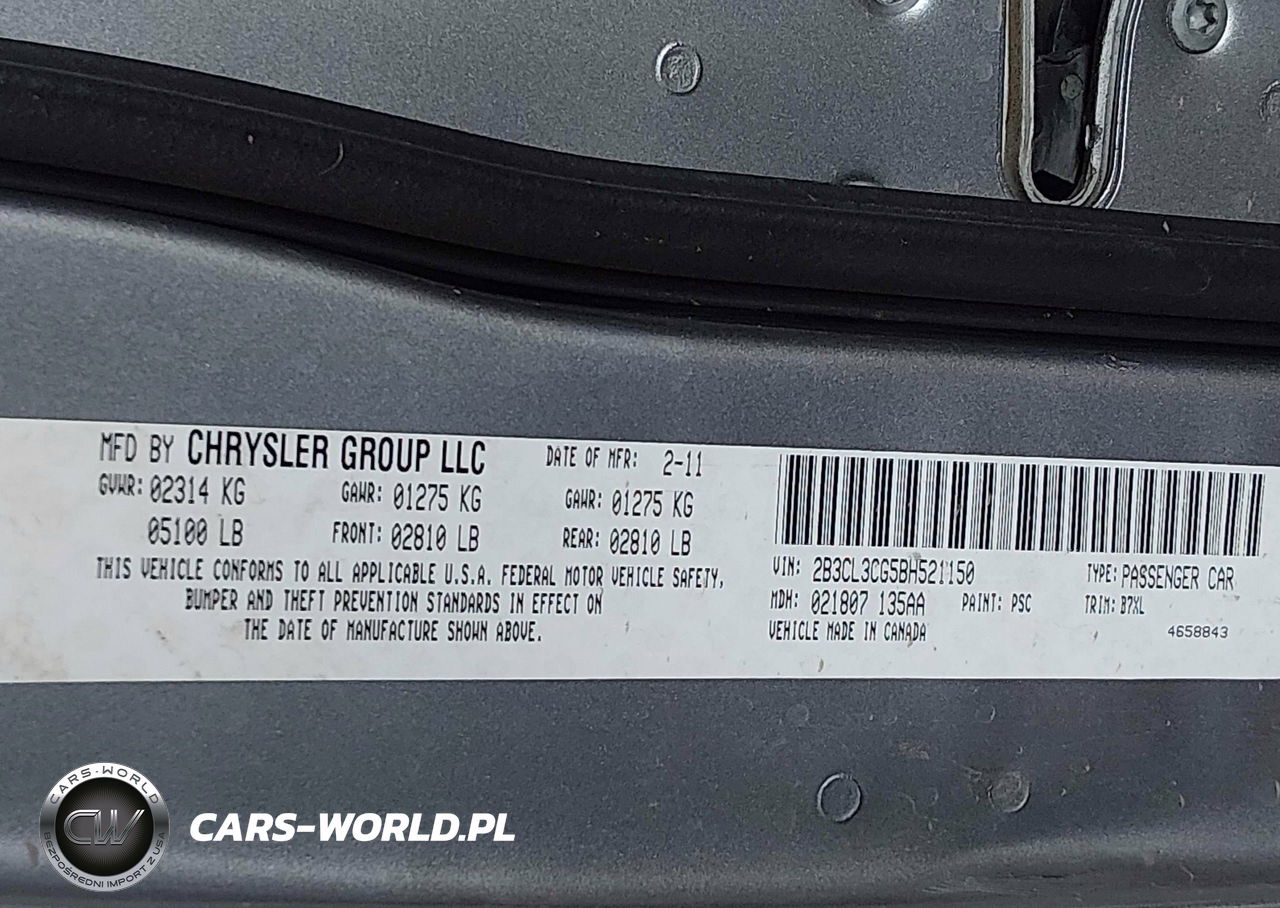 IAAI Nr: I-44854898 VIN: 2B3CL3CG5BH521150 Port: Los Angeles, CA