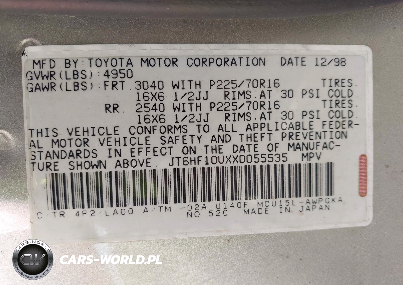 IAAI Nr: I-44856280 VIN: JT6HF10UXX0055535 Port: Los Angeles, CA