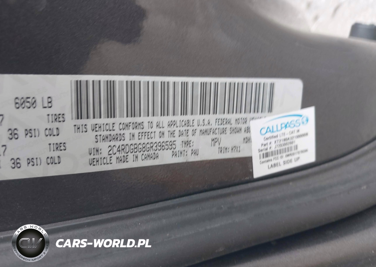 IAAI Nr: I-44856545 VIN: 2C4RDGBG8GR396595 Port: Houston, TX