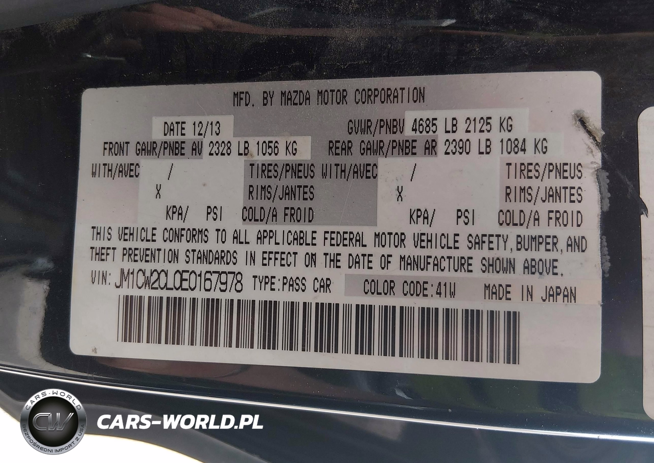 IAAI Nr: I-44856828 VIN: JM1CW2CL0E0167978 Port: Indianapolis, IN