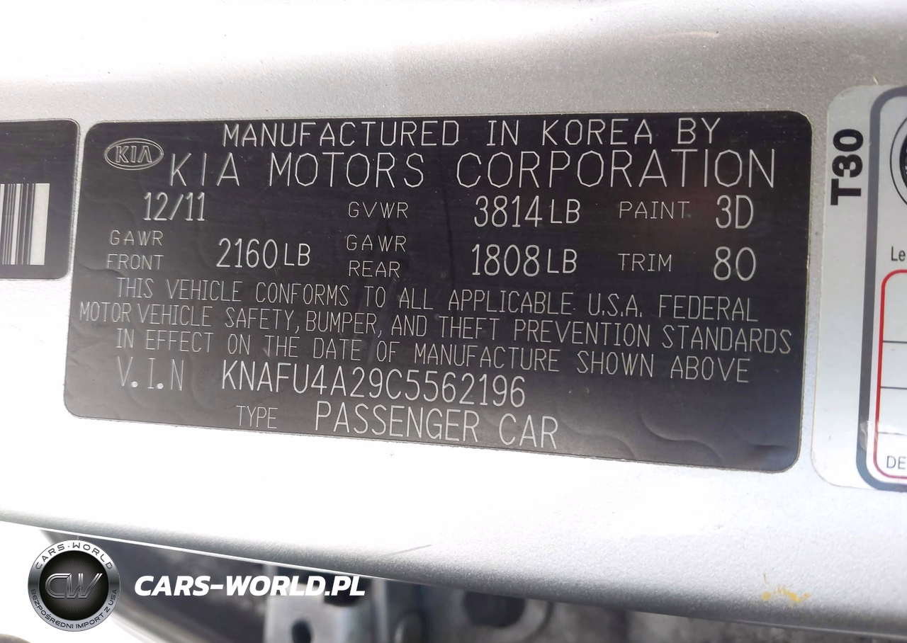 IAAI Nr: I-44857056 VIN: KNAFU4A29C5562196 Port: Los Angeles, CA