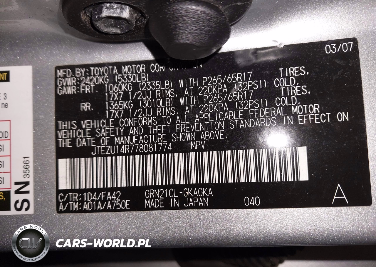 IAAI Nr: I-44857162 VIN: JTEZU14R778081774 Port: Indianapolis, IN