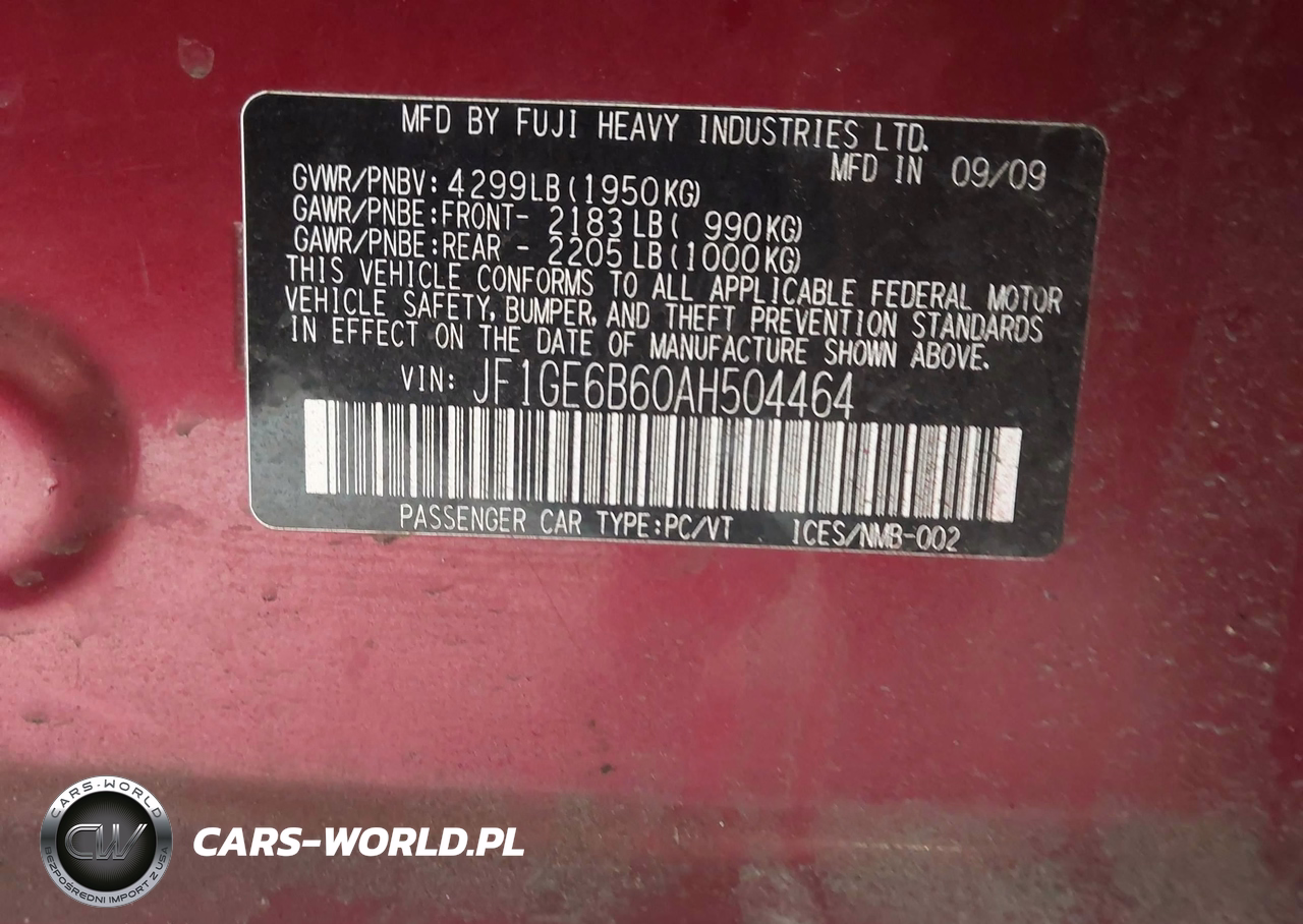 IAAI Nr: I-44857855 VIN: JF1GE6B60AH504464 Port: Indianapolis, IN