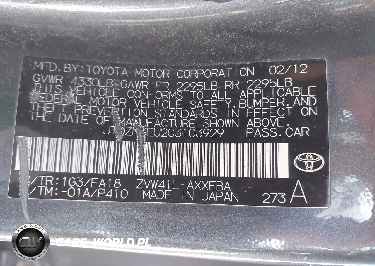 IAAI Nr: I-44857966 VIN: JTDZN3EU2C3103929 Port: Elizabeth, NJ