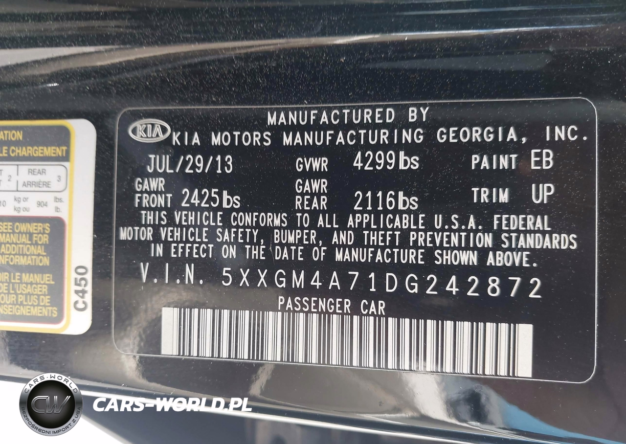 IAAI Nr: I-44858031 VIN: 5XXGM4A71DG242872 Port: Savannah, GA