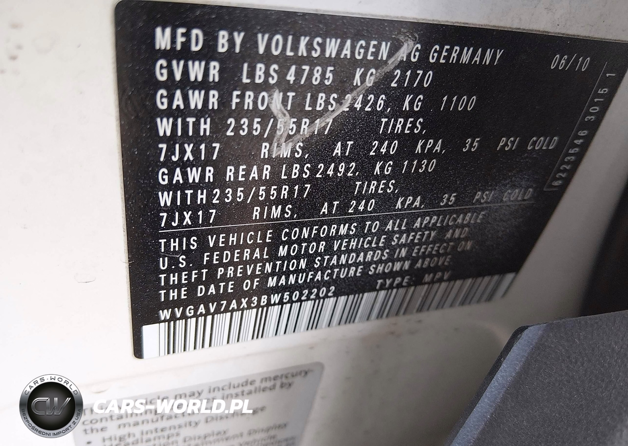 IAAI Nr: I-44858110 VIN: WVGAV7AX3BW502202 Port: Indianapolis, IN