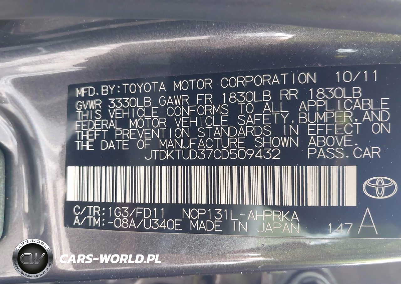 IAAI Nr: I-44858160 VIN: JTDKTUD37CD509432 Port: Elizabeth, NJ