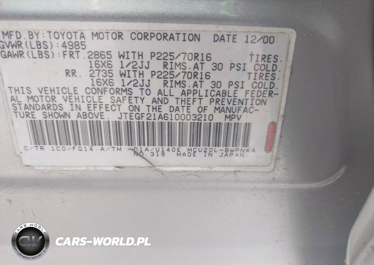 IAAI Nr: I-44858359 VIN: JTEGF21A610003210 Port: Savannah, GA