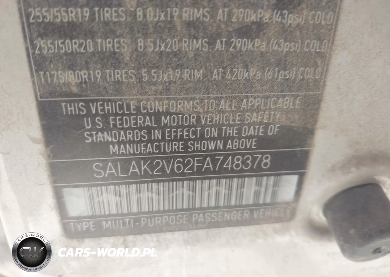 IAAI Nr: I-44858390 VIN: SALAK2V62FA748378 Port: Los Angeles, CA